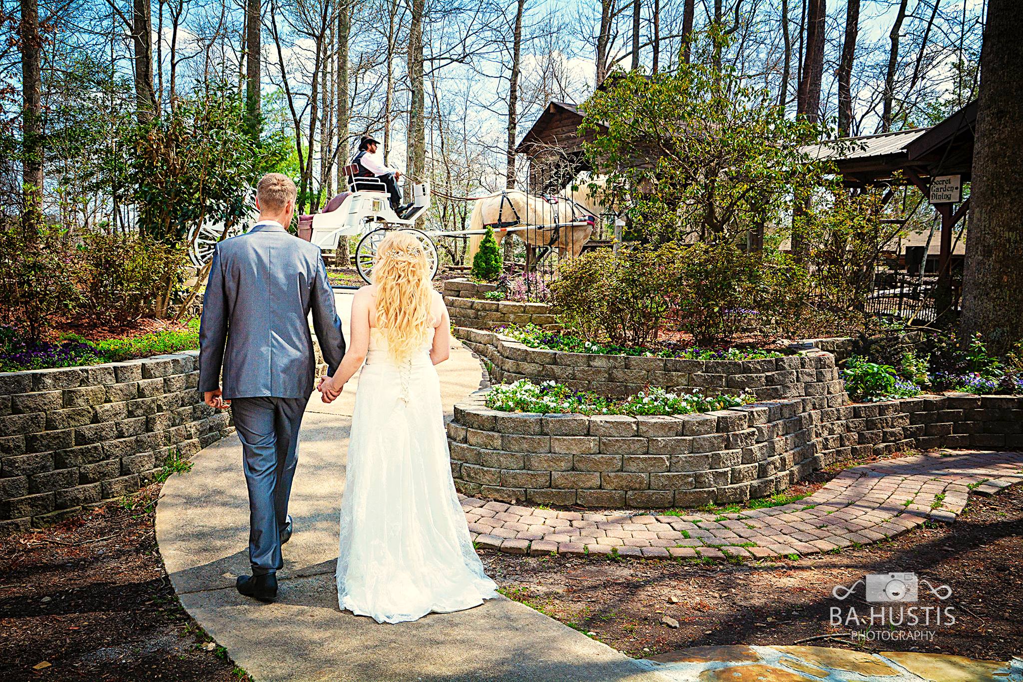 WEDDING CARRIAGE:  If you choose to incorporate this romantic option with your package, the carriage will pick you up at your accommodation (or as close to it as possible) at your ceremony time and will take you to your ceremony.  After the ceremony, it will take you on brief ride and return you to your cabin or to the ceremony location for more pictures.  The carriage will turn into a pumpkin after 45 minutes, so if you plan to be at the ceremony location after that time, be sure to have a ride back to you cabin/room or be prepared to walk.  Odds are it isn’t that far back to your accommodation, but walking in heels is challenging for some.