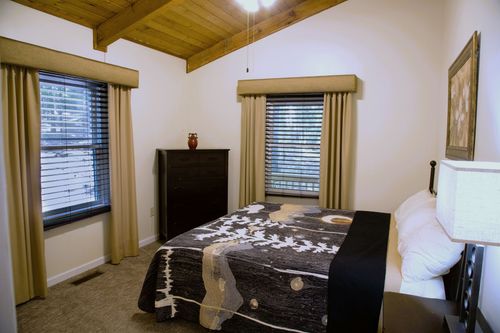 1,400 sq. ft. pet-friendly cabin with 2 king bedrooms, full kitchen, fireplace, private hot tub room, and 2.5 baths. Sleeps families or groups comfortably. Small dogs permitted. Limit 2. Advance notice and pet fees apply.
