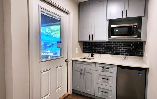 Renovated King suites with fireplace, private bath, kitchenette, balcony, and modern amenities—ideal for a cozy mountain escape. NO PETS